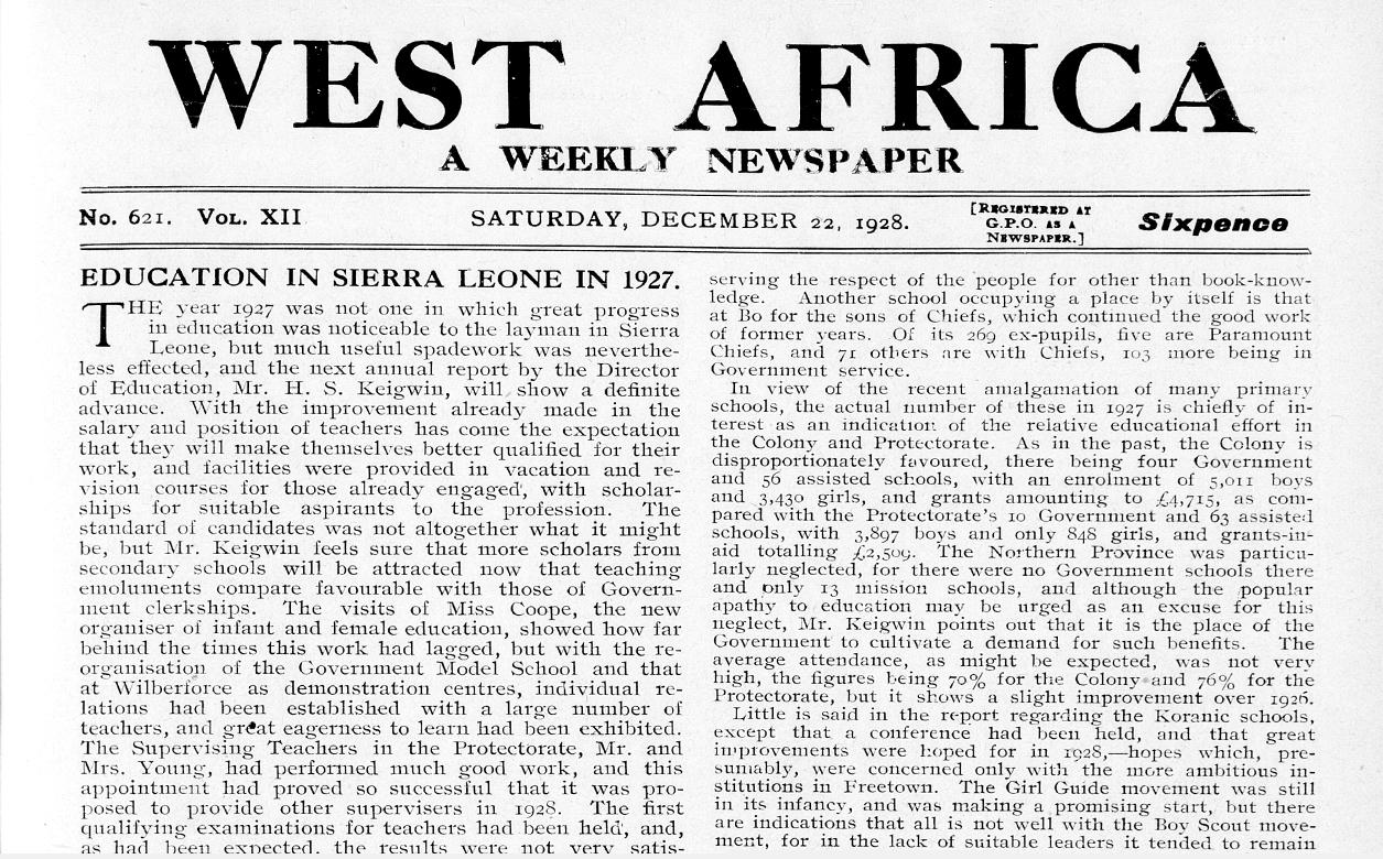 West Africa profiled significant anti-colonialist figures, such as Kwame Nkrumah, the first president of Ghana; Nnamdi Azikiwe and Obafemi Awolowo, two of the fathers of Nigerian nationalism, from the Igbo and Yoruba ethnic groups respectively; Léopold Sédar Senghor, the Senegalese cultural theorist, poet, and politician; and Félix Houphouët-Boigny, the first president of the Ivory Coast. Alongside detailed analysis of key political issues and events, West Africa spotlighted cultural trends, reporting, for example, on West Africans’ opinions on the British Empire Exhibition of 1924–25, and on the activities of West African social and sports clubs. From 1978, the magazine published poetry and fiction, the Booker Prize winning novelist, Ben Okri, serving as Literary Editor from 1981.
