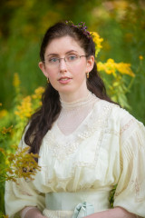 These gowns are cut on the same lines; they both have sleeves cut and set the same way (albeit, the yellow one has the extra flounces at the cuffs), are both cut as open front gowns with bodices that fit tightly over a pair of stays, and both have skirts that are cut separately from the bodice and sewn to the waistband with pleats. Yet, clearly, beyond the ornamentation and color, they are very different gowns. The printed dress has a more relaxed look to it whereas the yellow gown is far more structured. This is due in large part to the fibers themselves. Cotton fibers are much softer and twist around themselves, whereas silk fibers lend themselves more to structure as they are flatter and twist less. This certainly aided in the change in popular dress since cotton gained in popularity alongside the shift in cultural mores.