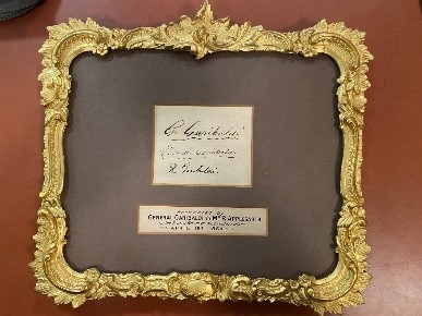 Framed Garibaldi Signature (1864)[8]This act affirmed in the minds of the working people of London that Garibaldi’s visit was for their pleasure and not for the establishment elites. However, this popularity among the working classes alarmed both Queen Victoria and the Government, which is why, two days later, it was suddenly announced that Garibaldi would be returning to Italy, ostensibly for “health reasons”.[9] In reality, Garibaldi’s early departure came at the request of the Government, a fact that became clear when it emerged in the papers that William Gladstone had met in private with Garibaldi a day before the announcement. [10]